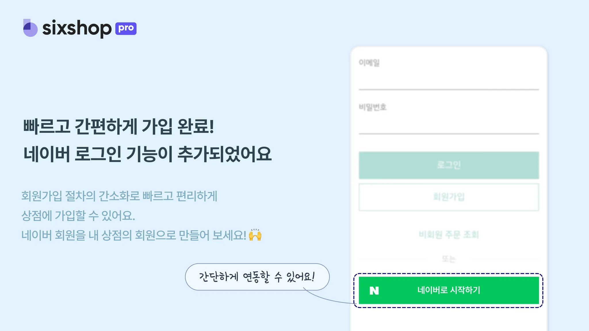 네이버페이 주문형 연동하고, 회원가입 과정 때문에 구매를 망설이는 고객의 고민을 해결해 보세요.
