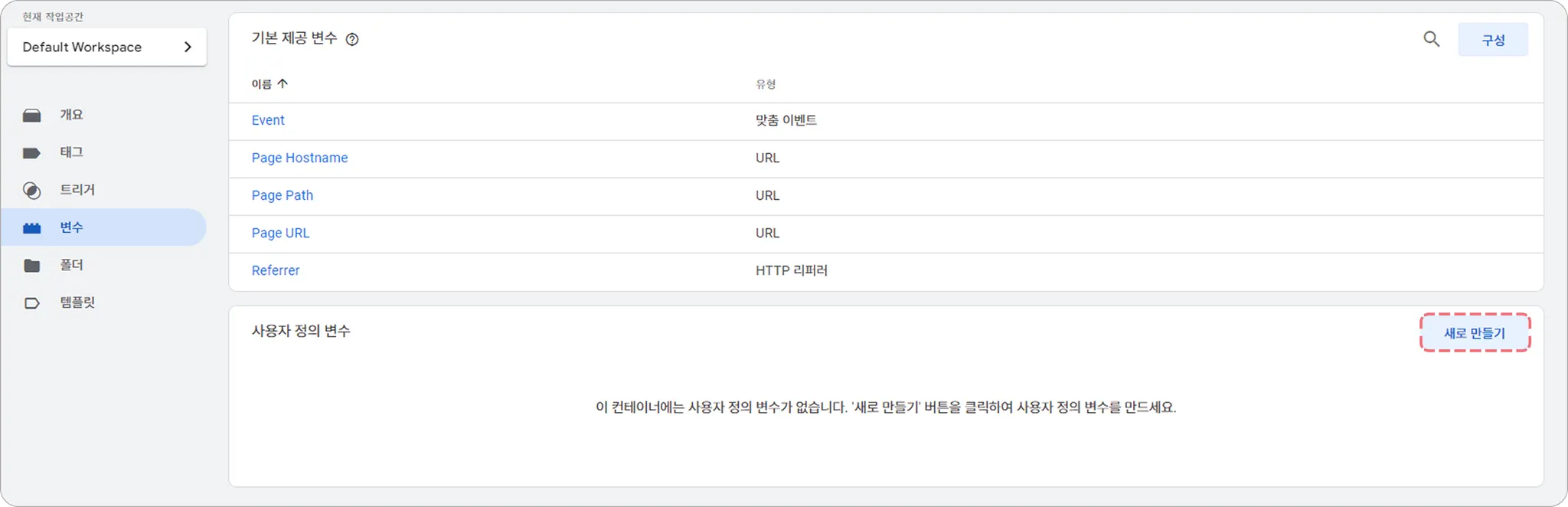 구글 태그 매니저(GTM)에서 GA4를 연동하려면 총 4개의 변수를 생성해야 합니다.