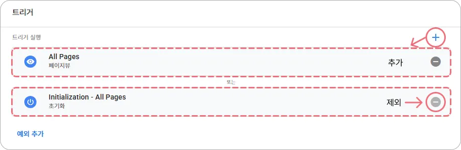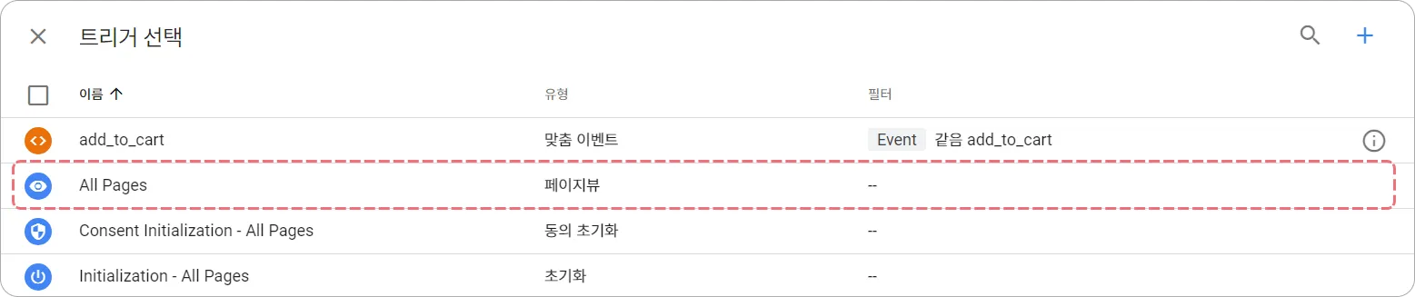 초기 설정되어 있는 Initialization - All Pages는 삭제하고 All Pages를 추가해 주세요.