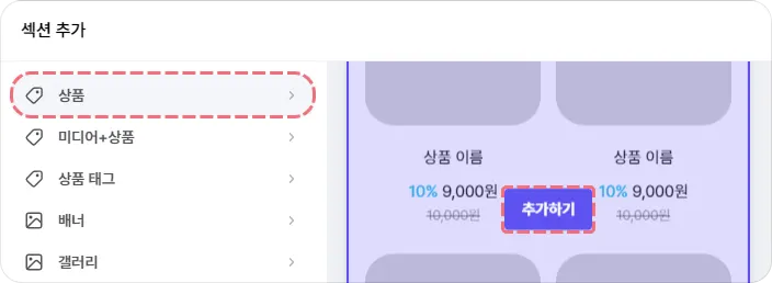 이벤트 상품을 연결하고, 상품 섹션의 제목과 내용을 입력해 주세요.