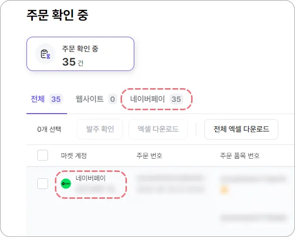 마켓 계정이 네이버페이로 표기된 주문은 네이버페이 주문형 주문입니다.