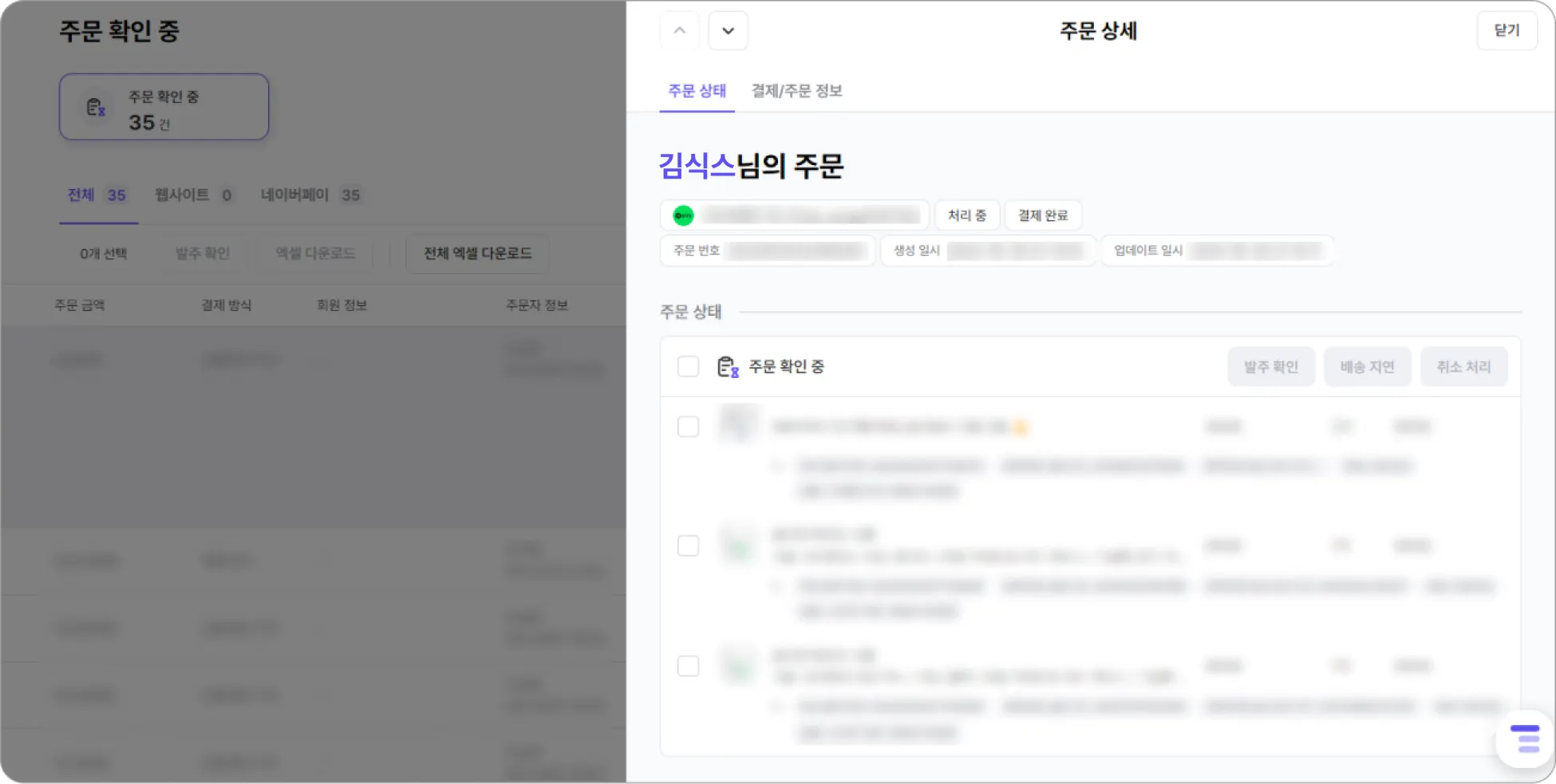 결제 완료된 신규 주문은 [주문 관리 > 주문 확인 중]에서 확인할 수 있습니다.