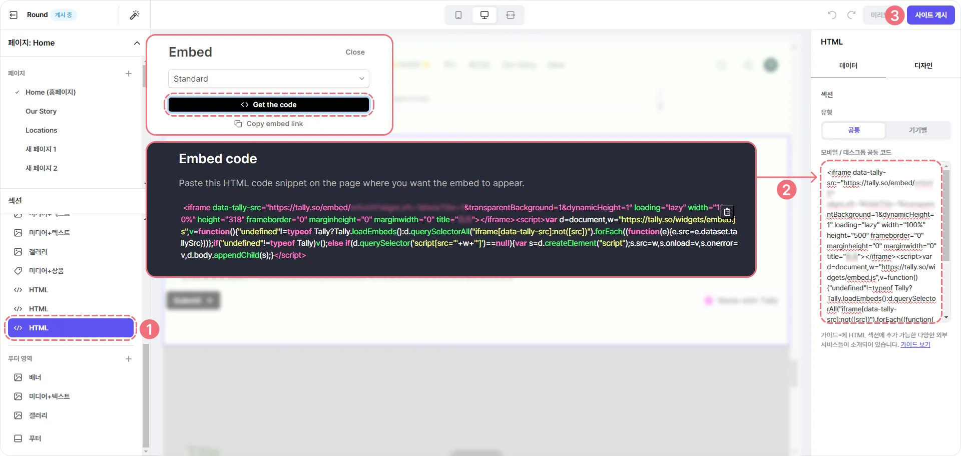 ③ HTML 코드를 입력해 주세요.