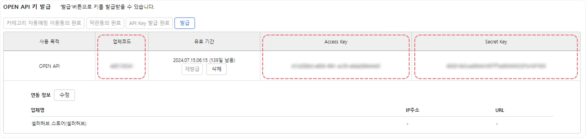 API 신청 시 업체는 셀러허브로 선택해 주세요.