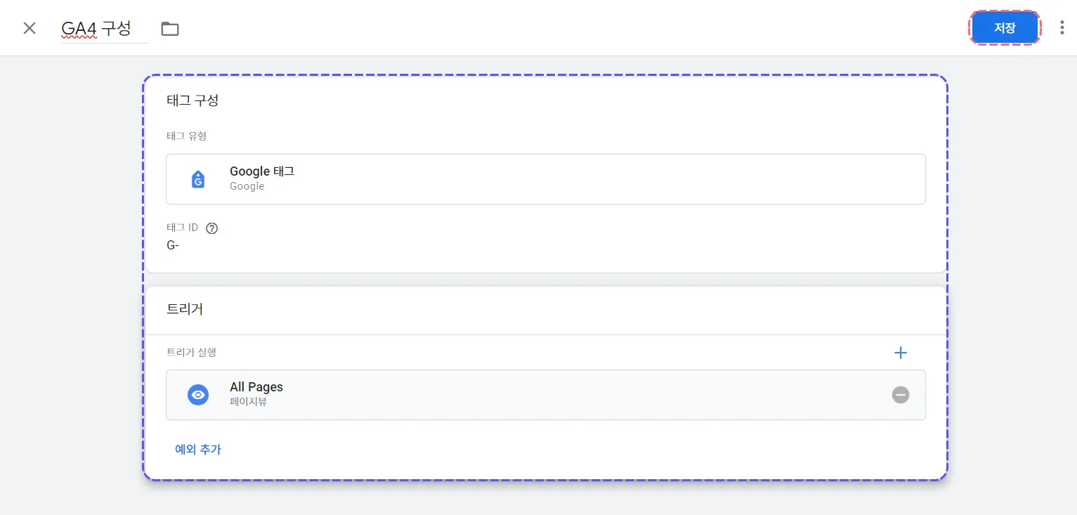 태그 설정을 마친 후 저장 을 눌러주세요.