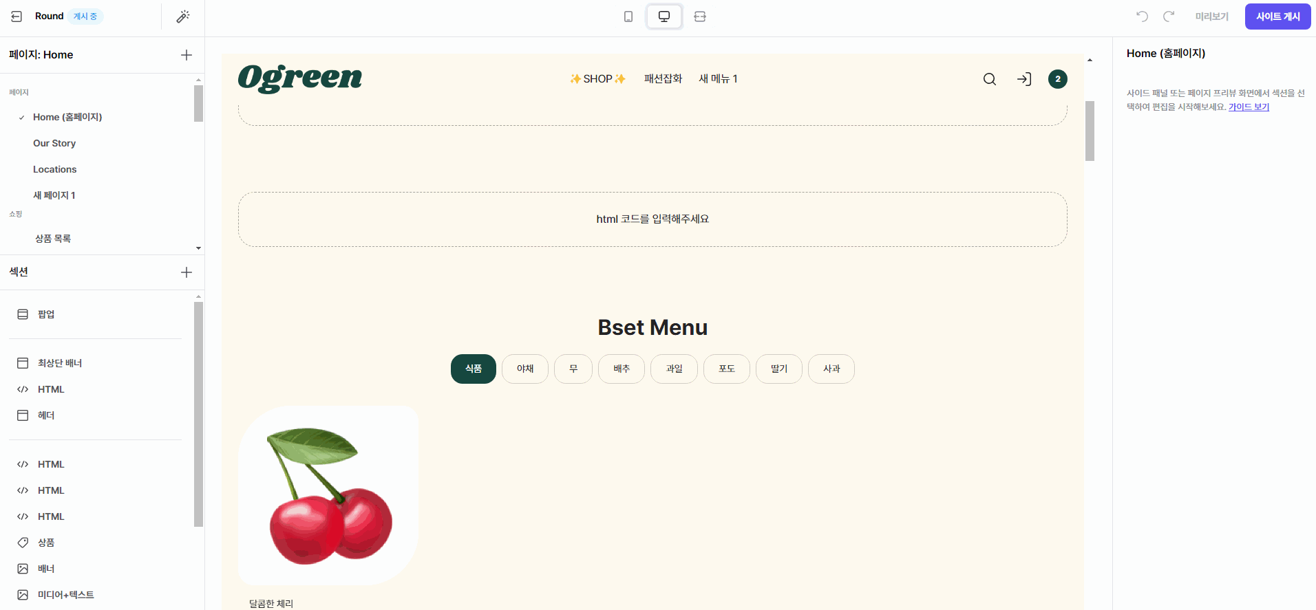 ② 본문 영역에 HTML 섹션을 추가해 주세요.