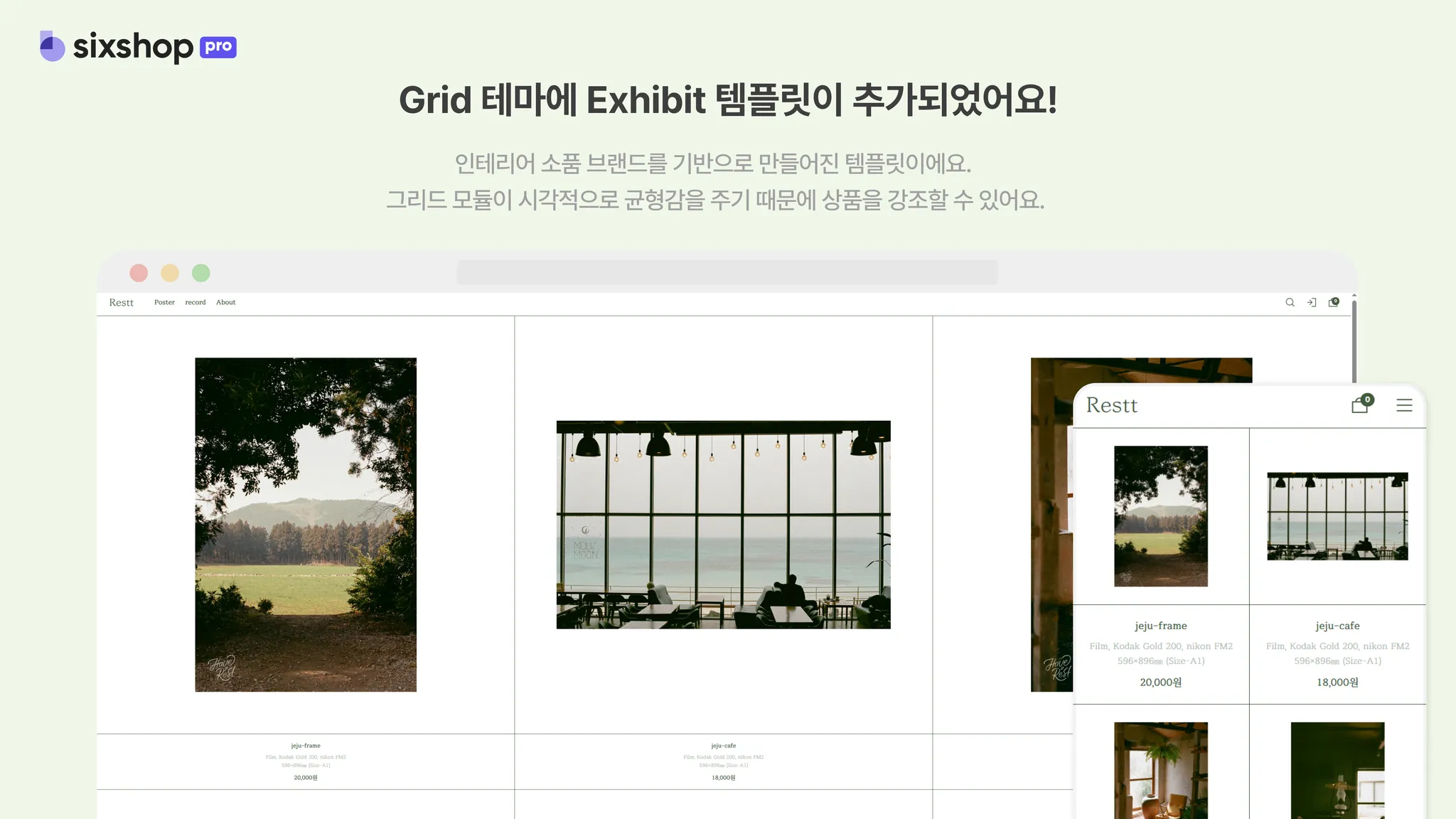 판매 상품인 포스터의 ‘감성’과 ‘공간감’을 강조하면서, 꽉 찬 너비의 이미지들을 타일처럼 채웠어요.