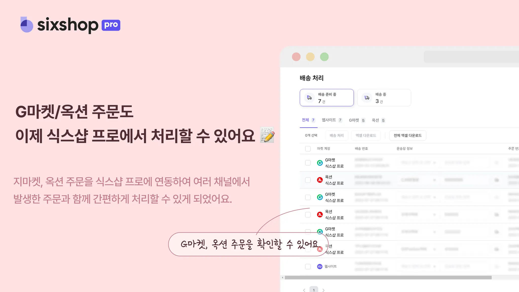 지마켓, 옥션에서 상품 판매 중이었다면, 식스샵 프로에 계정 정보를 연결하여 주문을 연동해 보세요.