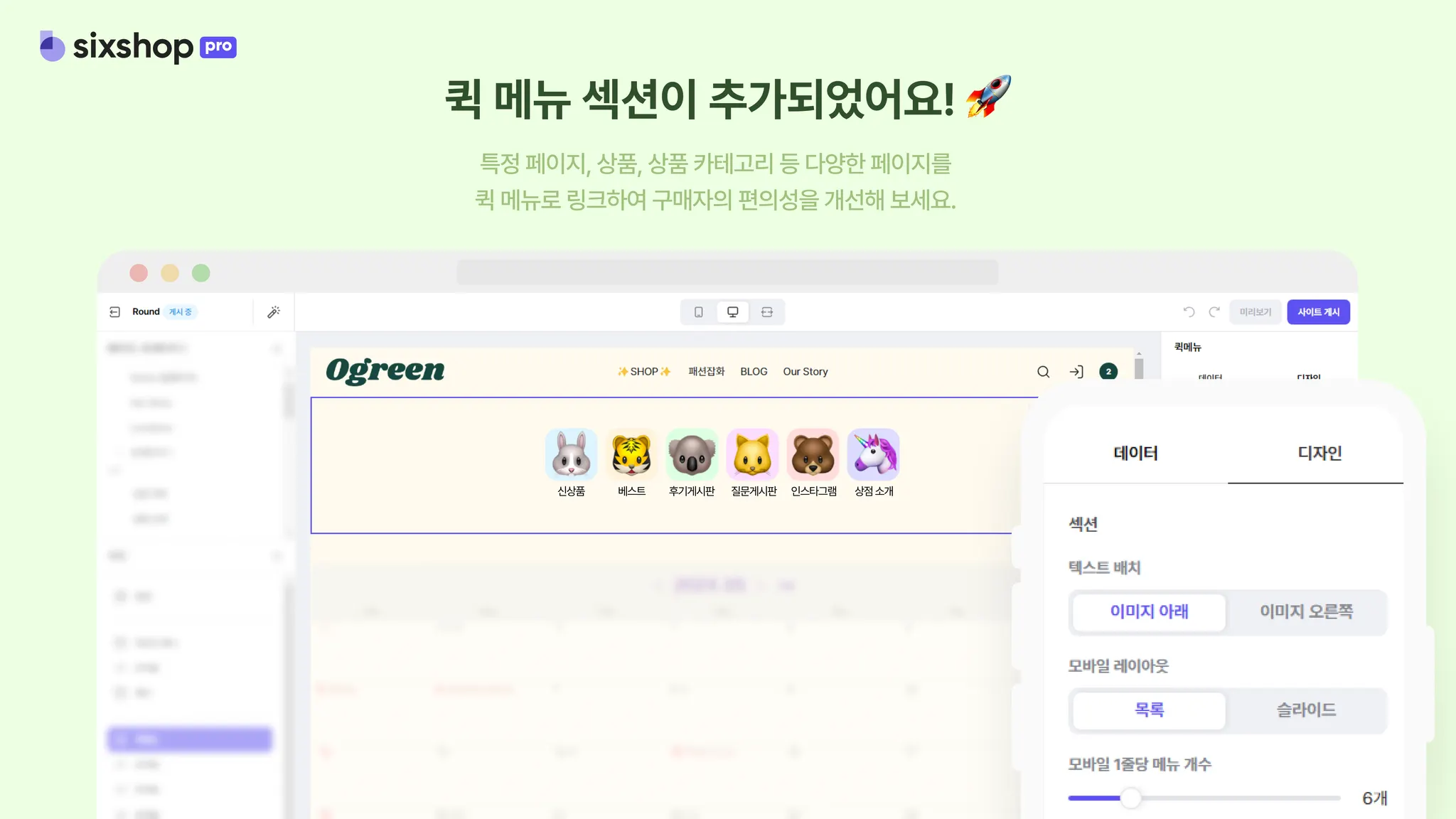 퀵 메뉴 섹션은 Round 테마에서 우선 제공되며, 순차적으로 모든 테마에 제공될 예정이에요.