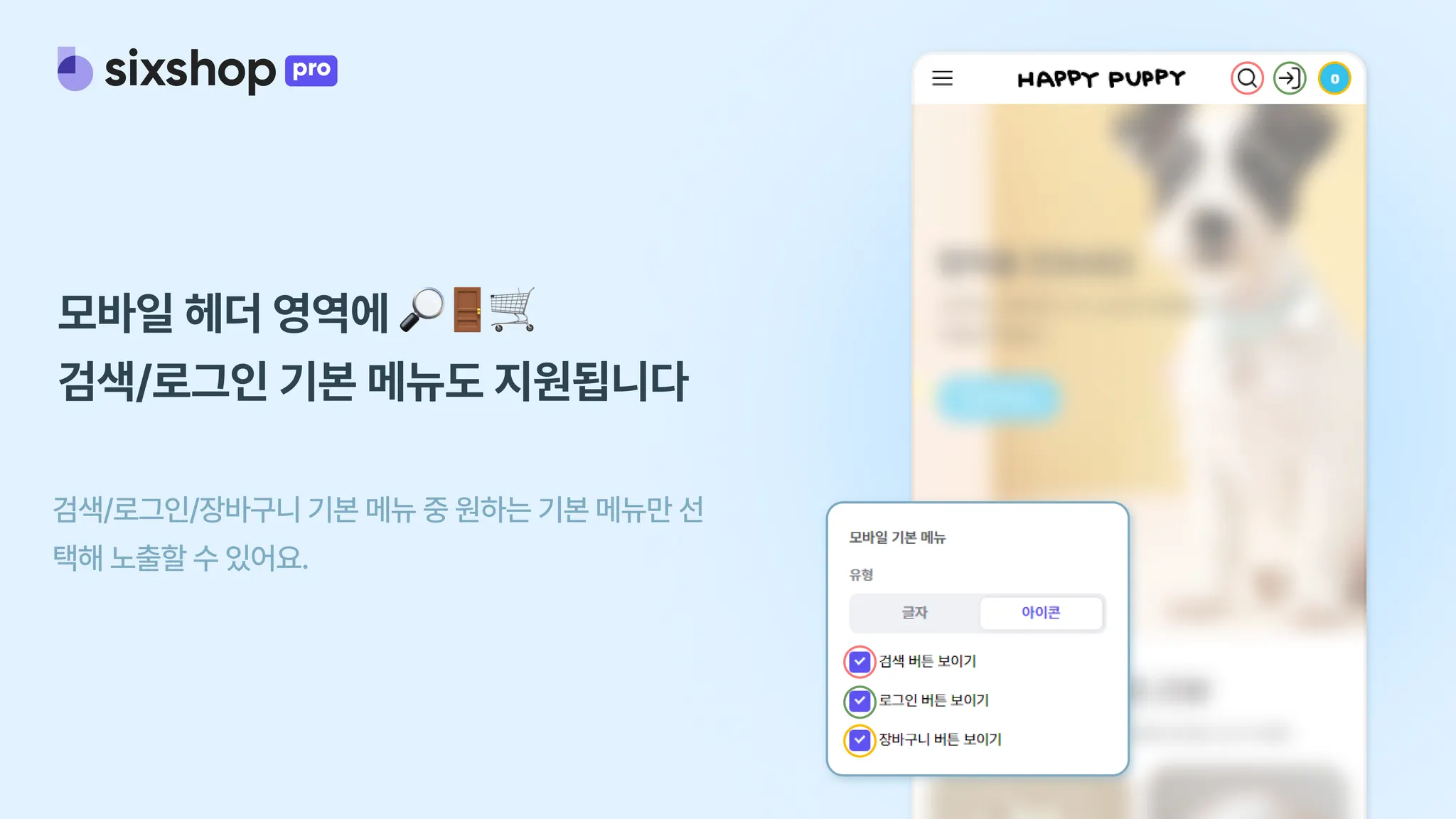 모바일 헤더에 로그인, 검색 메뉴가 쏙!