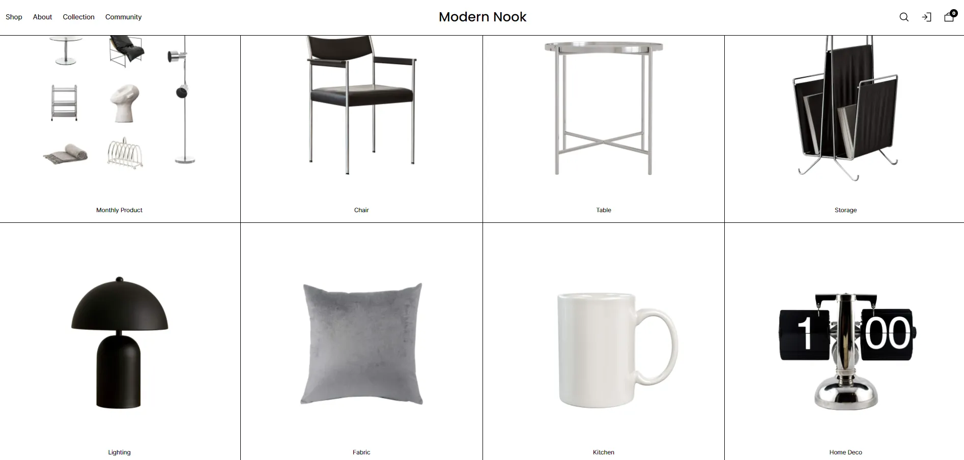 인테리어 소품 브랜드 기반으로 만들어진 템플릿이에요. 판매 상품인 포스터의 ‘감성’과 ‘공간감’을 강조하면서, 꽉 찬 너비의 이미지들을 타일처럼 채웠어요.