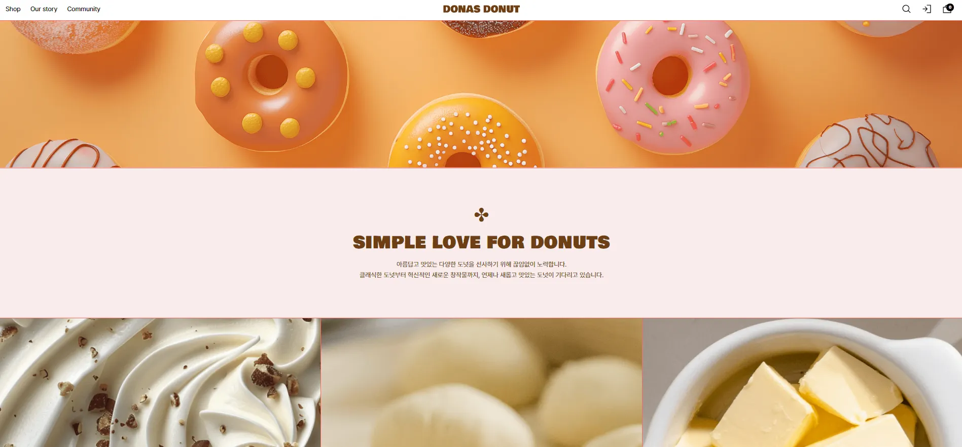 여성 패션 브랜드 기반으로 만들어진 템플릿이에요. 화려한 이미지와 심플한 설명을 미디어+텍스트 섹션으로 대조하여 감각적 브랜드 이미지를 연출해요.