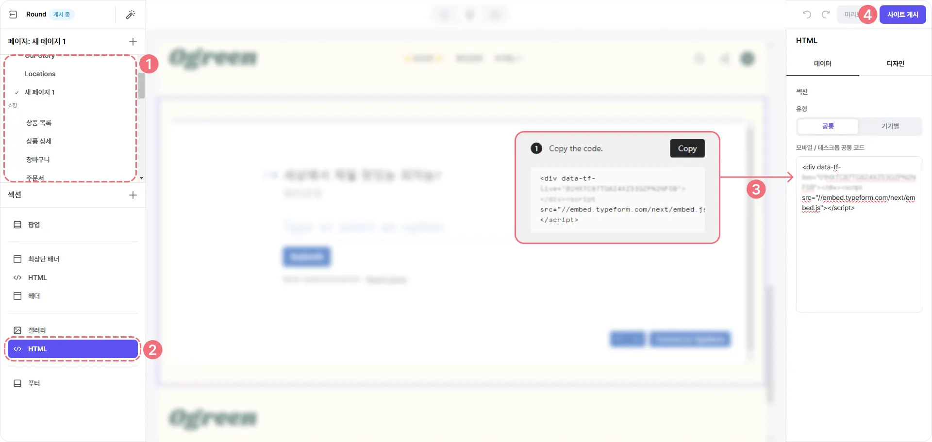 타입 폼으로 설문지를 제작하고 HTML 코드를 삽입하여 상점에서 활용할 수 있습니다.