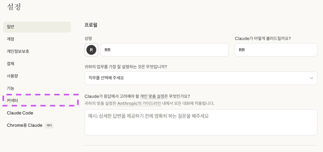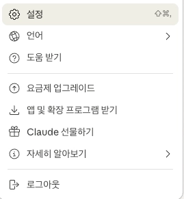 1. 클로드 웹 / 앱 접속 후 로그인 → 좌측 하단 프로필 → 설정