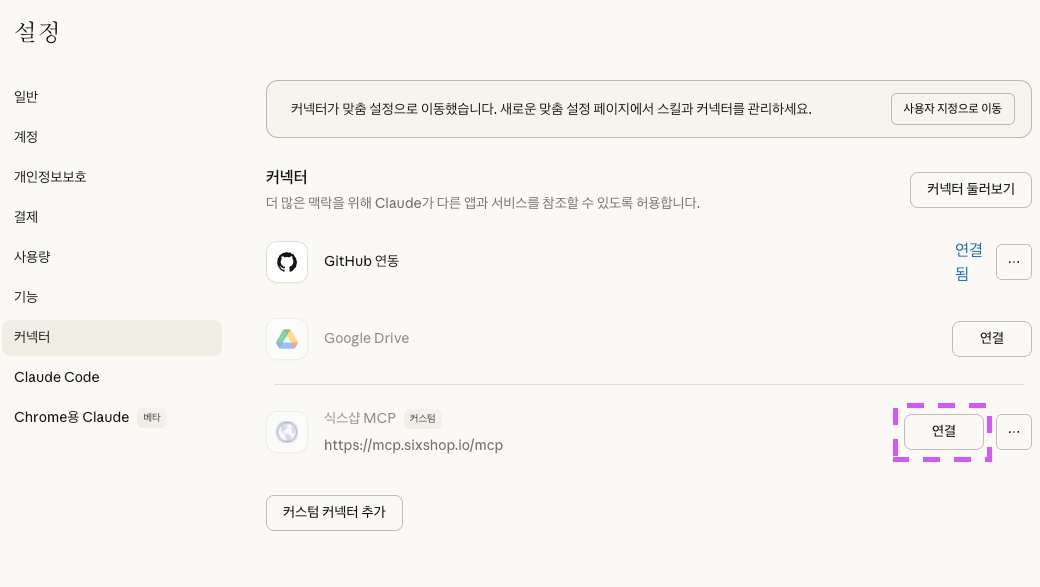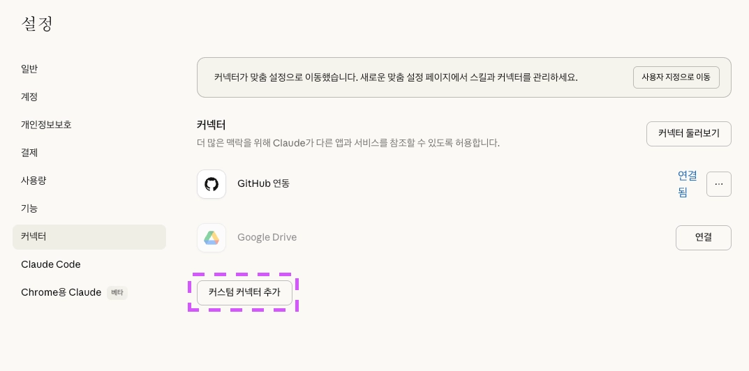 3. 커스텀 커넥터 추가 클릭