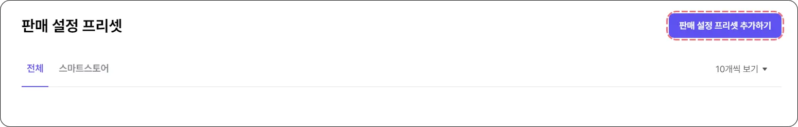 판매 설정 프리셋 추가하기