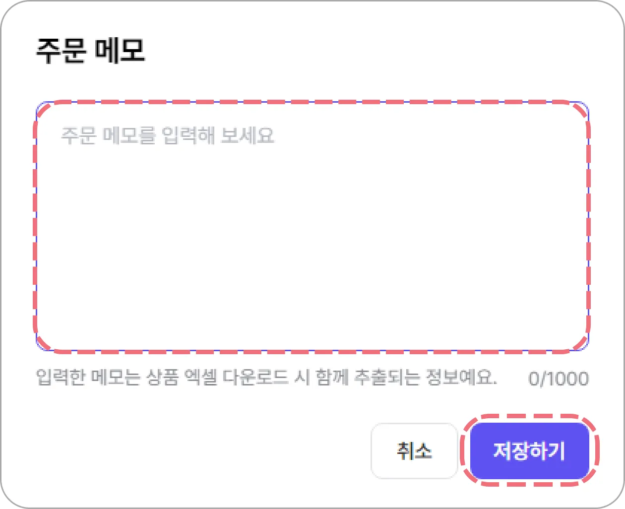 주문 메모 일괄 처리 시, 기존에 개별 입력된 메모가 지워지고 새로운 메모로 덮어씌워지니 입력에 유의하여 주세요.