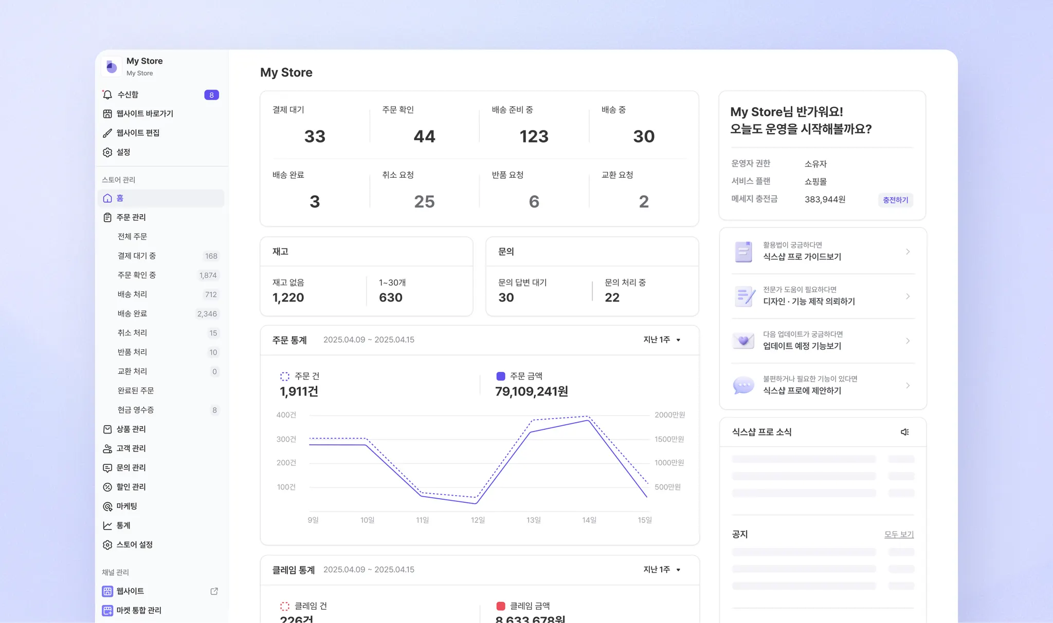 사이트 중단 없이 안정적인 운영이 가능하도록 식스샵 프로가 지원해드려요.