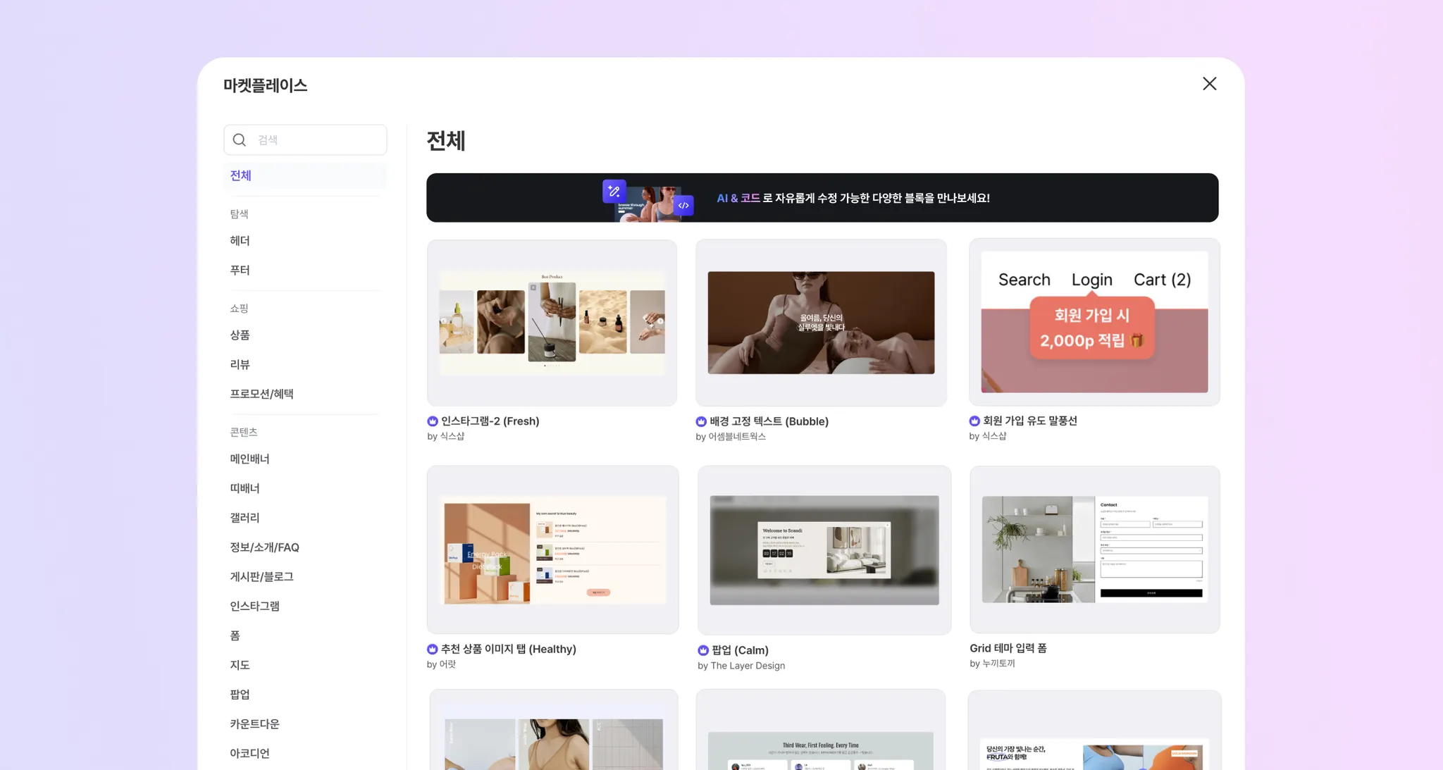 레이아웃, 애니메이션, 스타일까지 원하는 대로! 나만의 개성 있는 블록을 완성해 보세요.