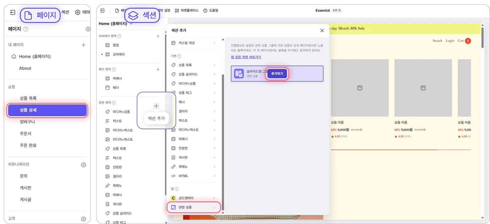관련 상품은 상품 상세 페이지에 다른 상품을 함께 노출하는 기능입니다.