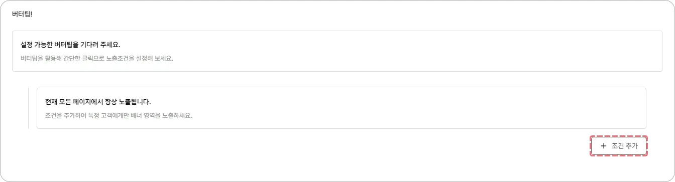 현재 모든 페이지에서 항상 노출됩니다.가 기본 노출 조건입니다.