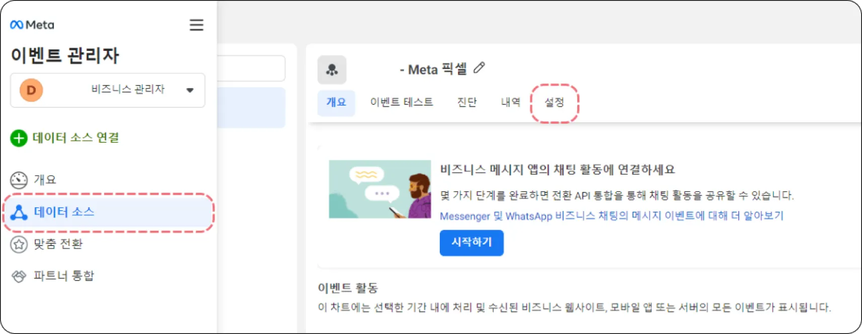 메타 픽셀 관리자 바로가기 : 클릭 시 메타 ‘이벤트 관리자’ 페이지로 이동합니다.