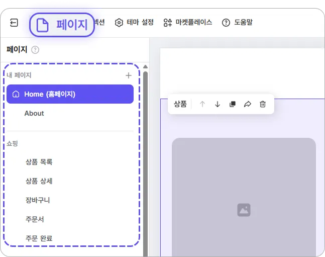Step 1. [식스샵 프로 > 웹사이트 편집]으로 이동하고 콘텐츠를 노출할 페이지로 이동해 주세요.