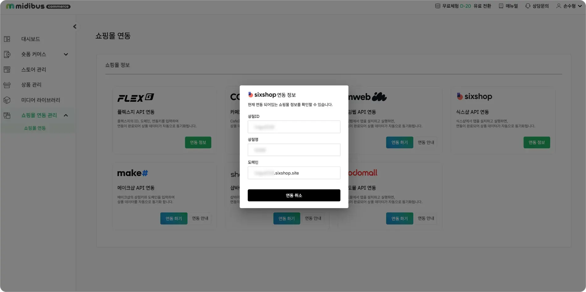 Step 4. [쇼핑몰 연동관리 > 쇼핑몰 연동 > 식스샵 API 연동]에서 정상 연동 여부를 확인해 주세요.