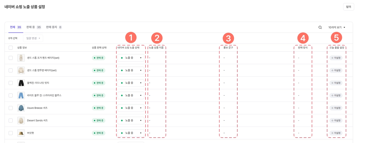 네이버 쇼핑 노출 상태를 설정할 수 있습니다.