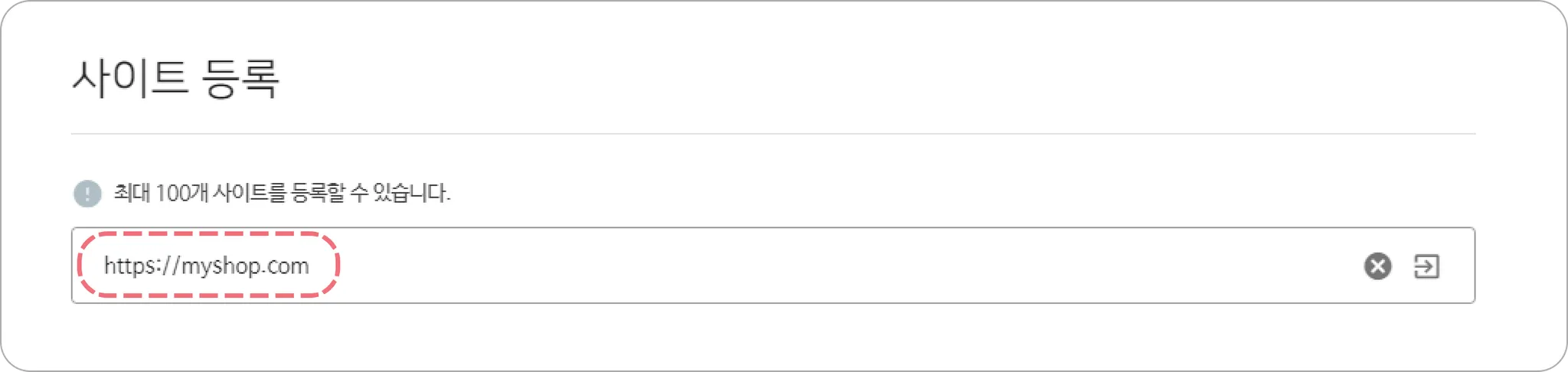 ② 사이트 등록 입력란에 https://도메인주소 형태로 사이트 주소 등록