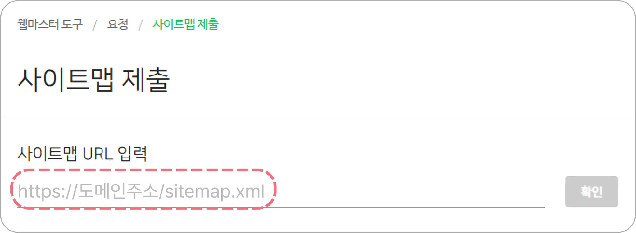 ③ 왼쪽 메뉴 [요청 > 사이트맵 제출]에서 사이트맵 URL 입력란에 https://상점도메인주소/sitemap.xml 형태로 사이트맵 제출