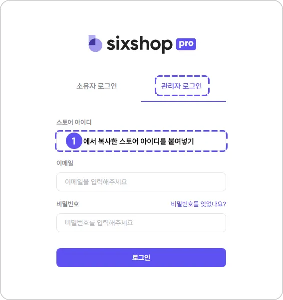 ① [식스샵 프로 > 왼쪽 상단 상점 이름 클릭 > 내 정보 > 계정 정보]