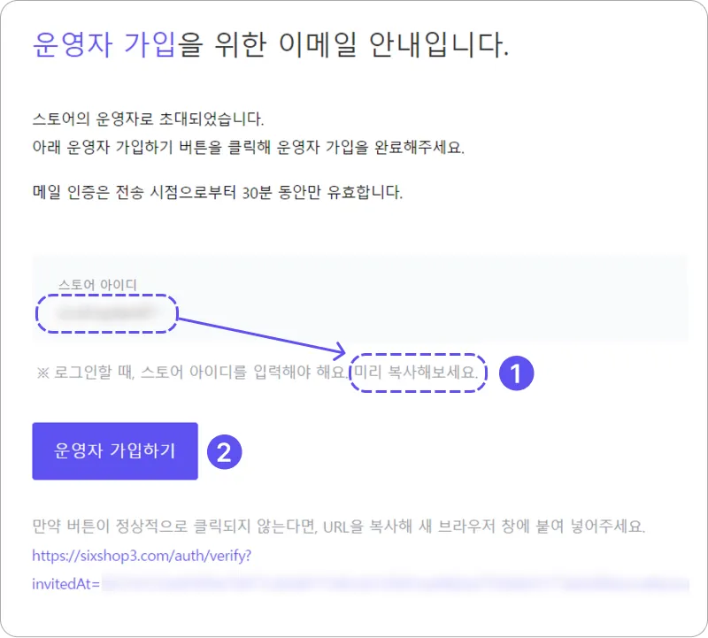 ① 소유자(판매자)가 보낸 가입 안내 이메일 내 운영자 가입하기 클릭