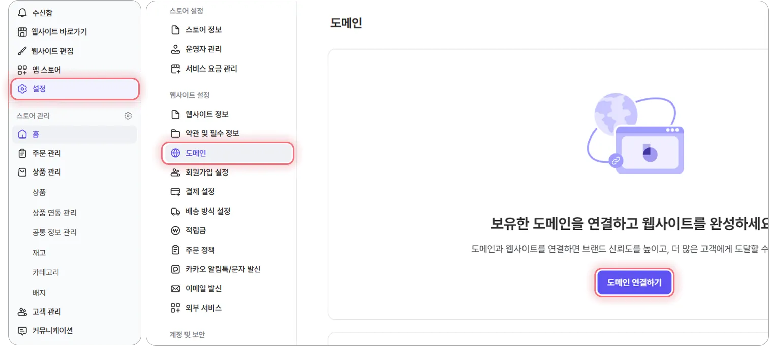 자세한 방법은 도메인 연결하기(클릭)에서 살펴볼 수 있습니다.