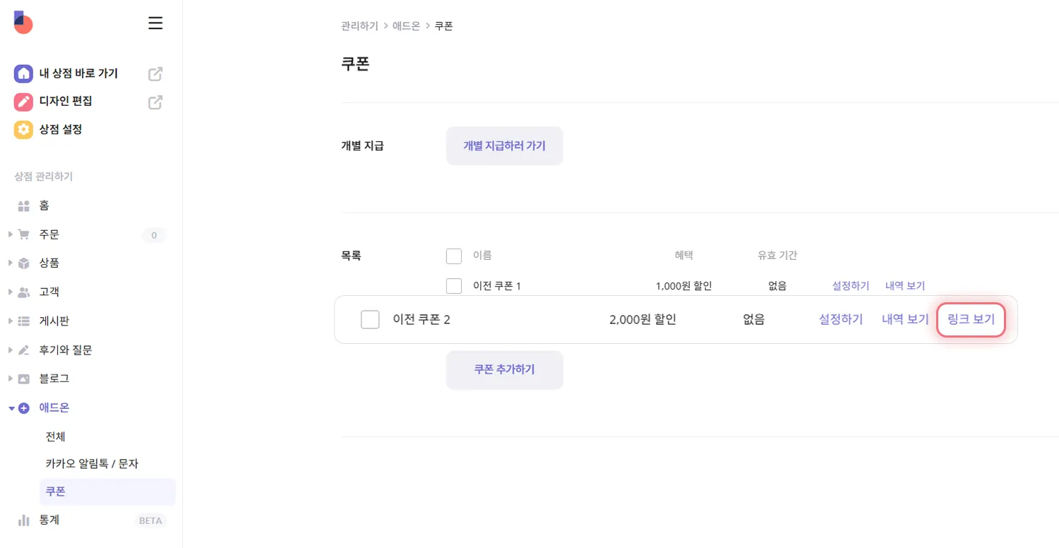 [식스샵 > 애드온 > 쿠폰], [식스샵 > 애드온 > 적립금]에서 기존 쿠폰/적립금 자동 지급 설정을 확인할 수 있습니다.