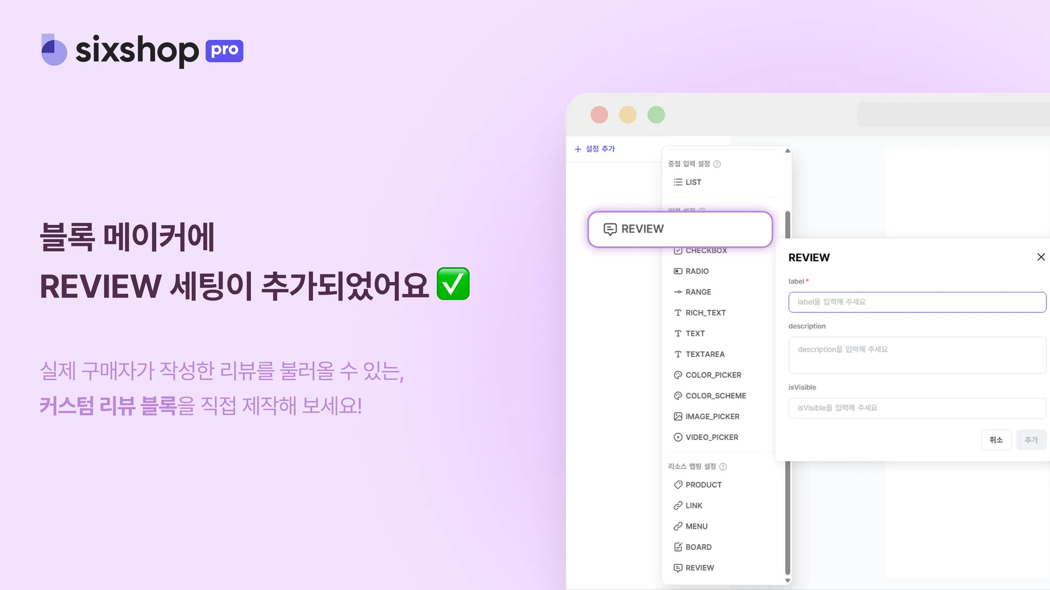리뷰 블록을 제작할 수 있게 되었답니다!