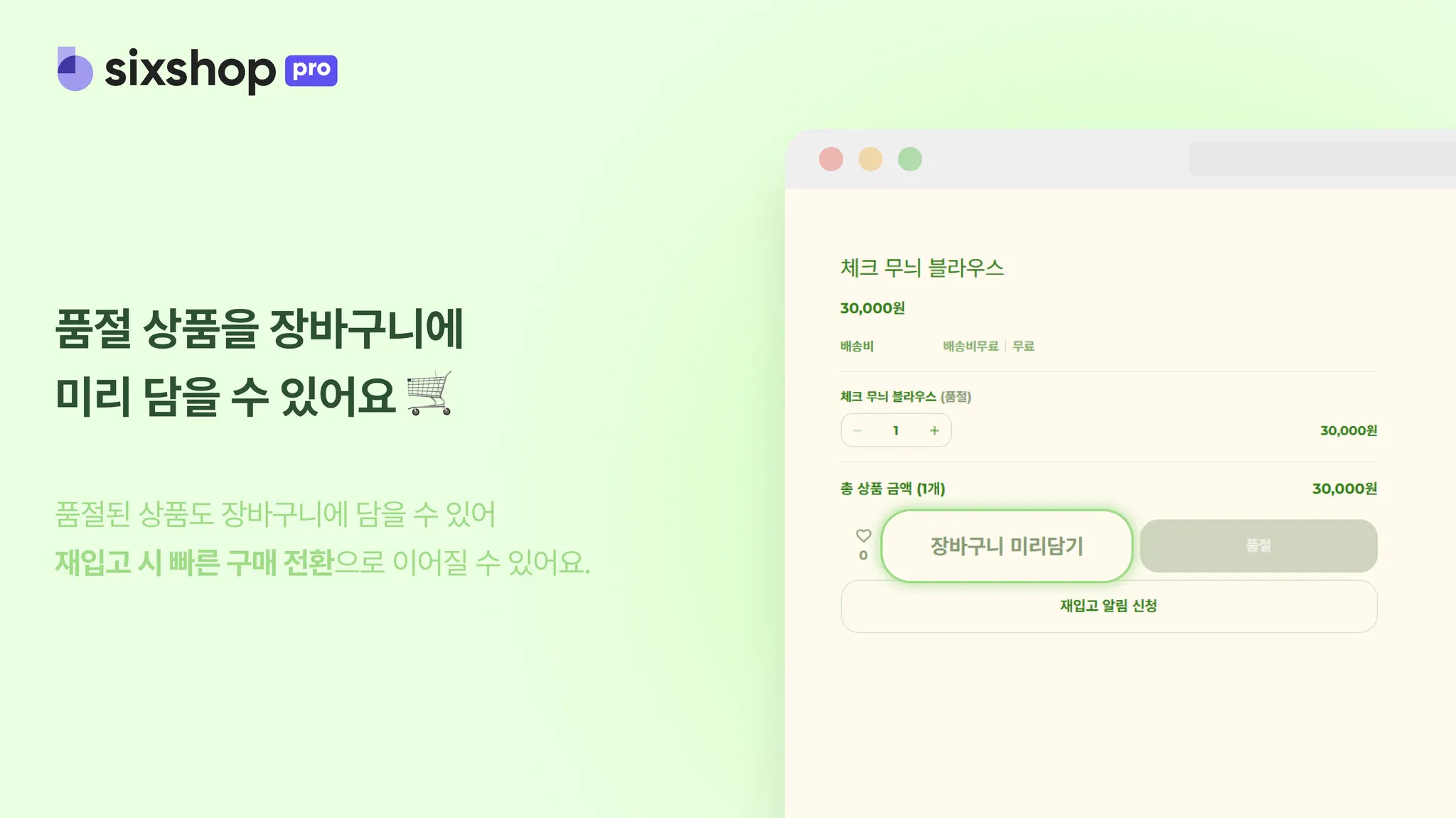 이제 고객은 품절된 상품도 장바구니에 담아둘 수 있어요.
