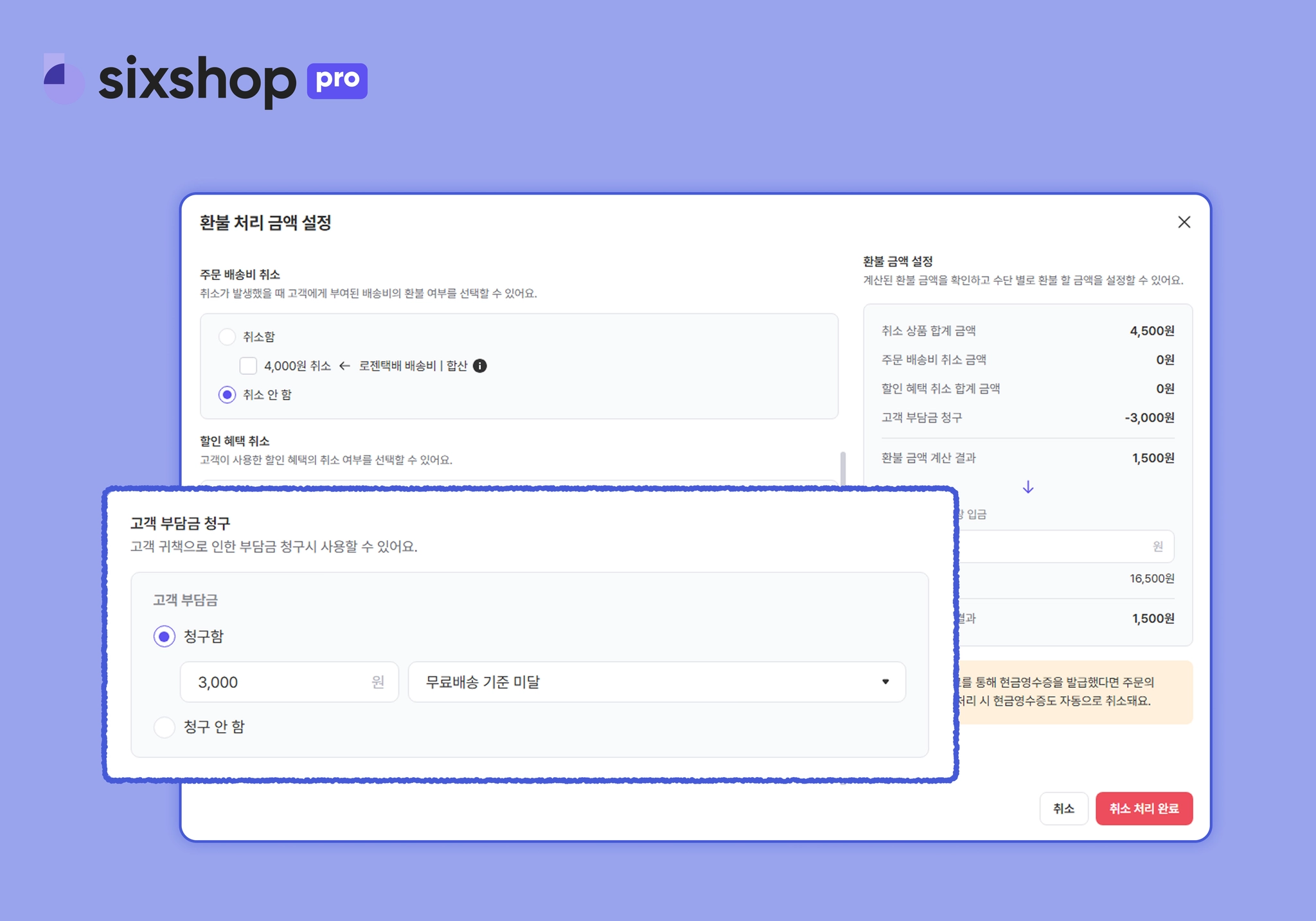이제 반품뿐만 아니라 '주문 취소' 시에도 고객 부담금을 차감할 수 있어요.