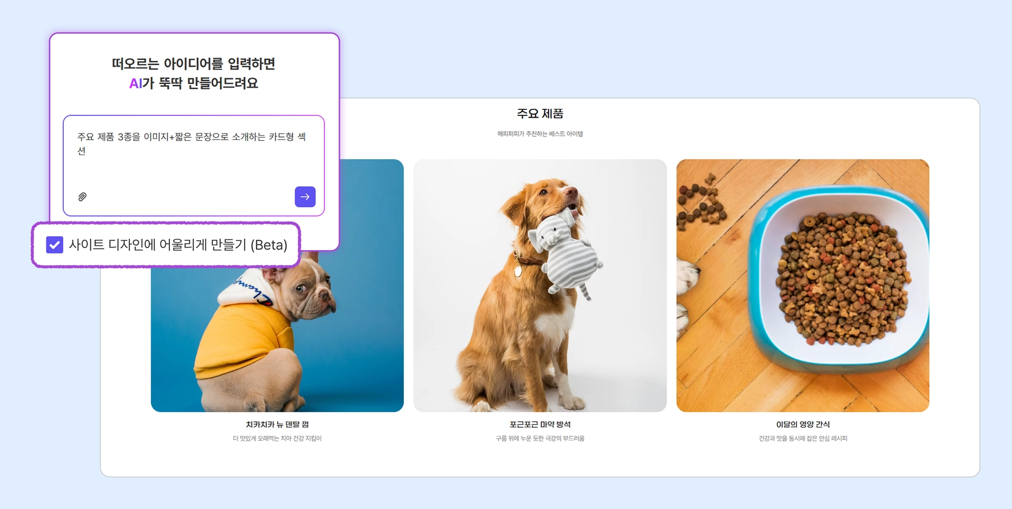 ‘사이트 디자인에 어울리게 만들기’ 기능을 켜면 AI가 현재 사이트 스타일을 분석하여,